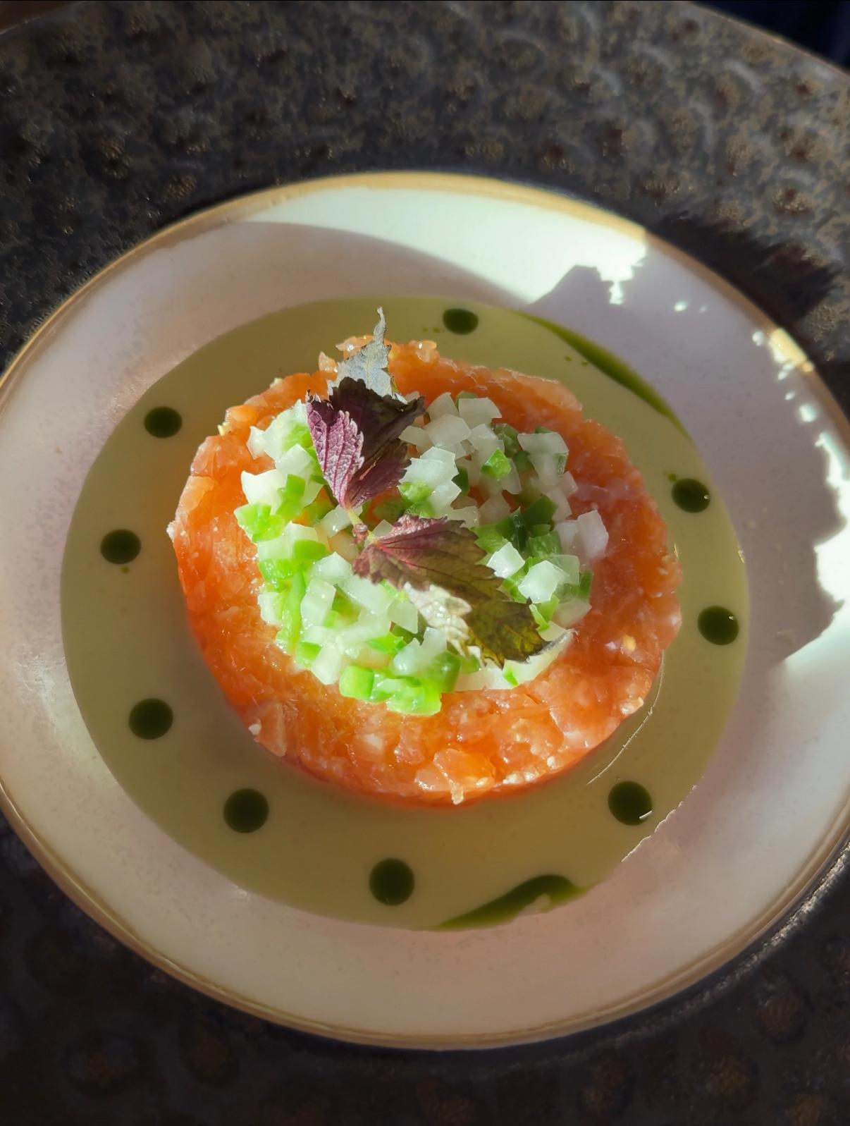 טרטר סלמון: סלמון מושרה בוואסאבי עם וינגרט חלפיניו. מנה אייקונית של דיינינגס; מאוד מרעננת, חמוצה חריפה שתמיד באה בטוב לכל מצב רוח ולכל רמת רעב.