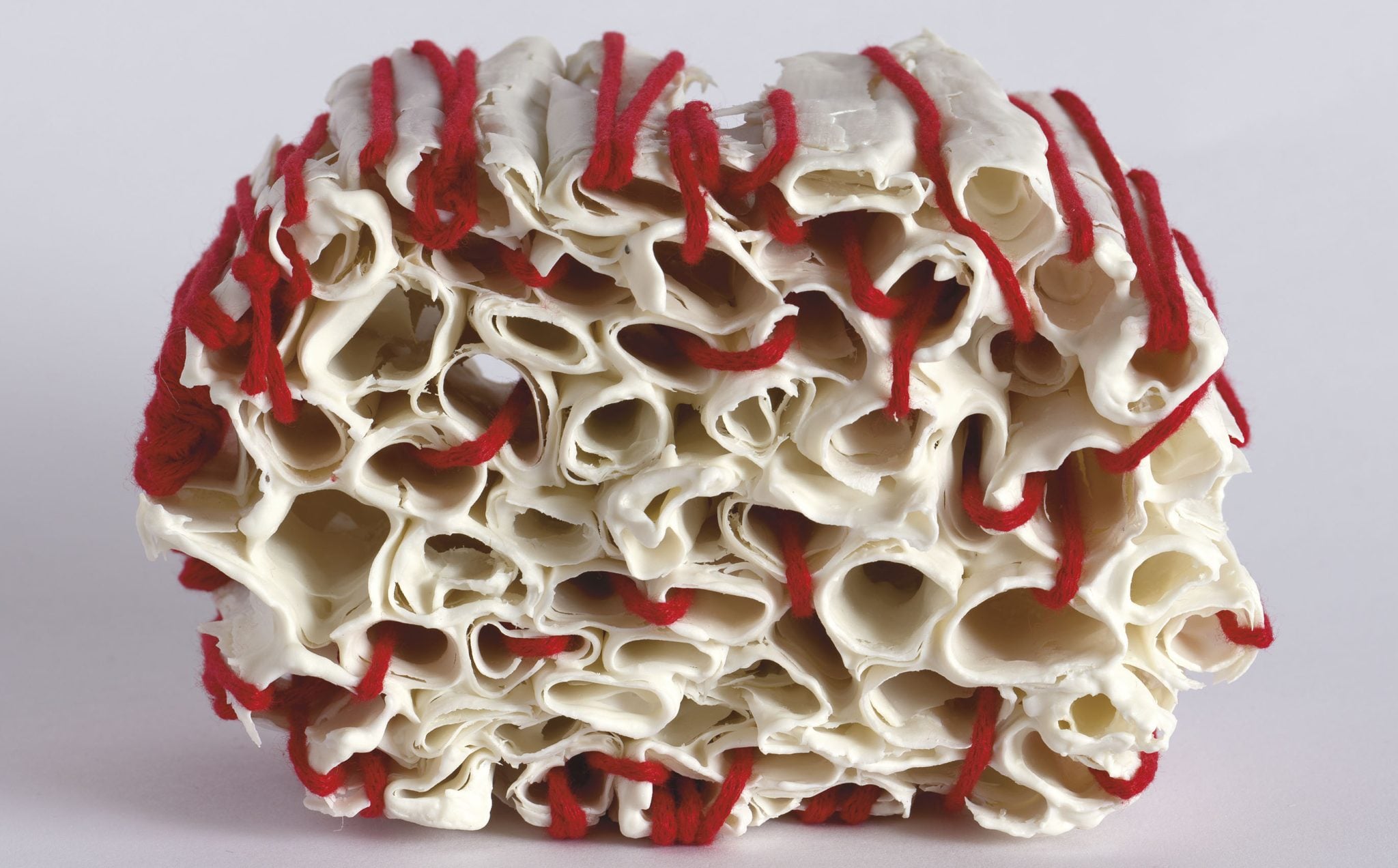 ״הליפה פועלת בו־זמנית כחומר מנקה וכחומר שורט ופוצע. בעבודות שלי מוחזרים הגוף והאוביקט אל חומריותם, וגם אל זיכרון גופני מתמשך. הפורצלן הוא חומר שברירי ולבן, שעומד בניגוד מוחלט לאדום הדחוס והטעון של החוטים הסרוגים. האוביקט הגדול מאפשר רגע של עצירה, שקט ונשימה, אבל לא מבטל את הפגיעה או את הפצע. הוא מציע אפשרות ליחס אחר כלפיהם, אולי כתחילתו של תהליך ההחלמה הפיזי והנפשי שעברתי״.