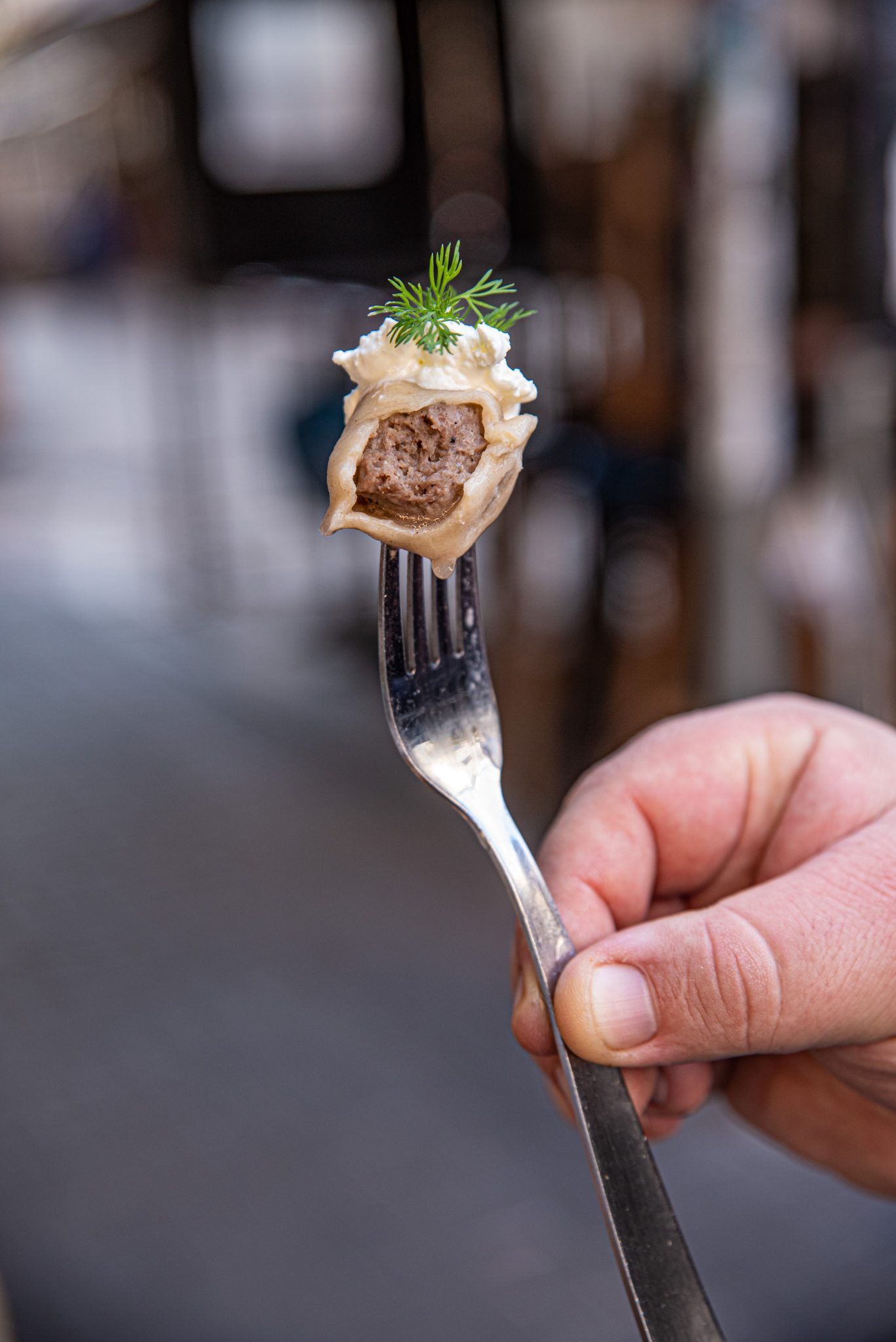 הפילמיני והווריניקי של הדובים נעשים בעבודת יד ומוגשים עם רטבים שונים. התפריט נבנה באופן הבא: בקר, עוף וחזיר לפילמני, כרוב או תפוחי אדמה בוורניקי. משם ממשיכים לכיסוי הכיסונים עם חמש אופציות שונות: בצל וחמאה חומה עם פלפל שחור ופרמז׳ן, חמאת טום יאם, לאבנה אריסה וחמאה מזוקקת (סמנה), בייקון אנד צ׳יז עם בשמל גבינות והגירסה הקלאסית, עם ציר עוף ושמיר. המנות מוגשות עם שמנת חמוצה ועם סלט שורשים ופפאיה. לקינוח תקבלו ורניקי דובדבנים עם פירורי מרנג (בשעות 12:00-20:00 יש הפי האוור שבמסגרתו מוצע האלכוהול ב־50% הנחה). אמאל׳ה ואבא׳לה.