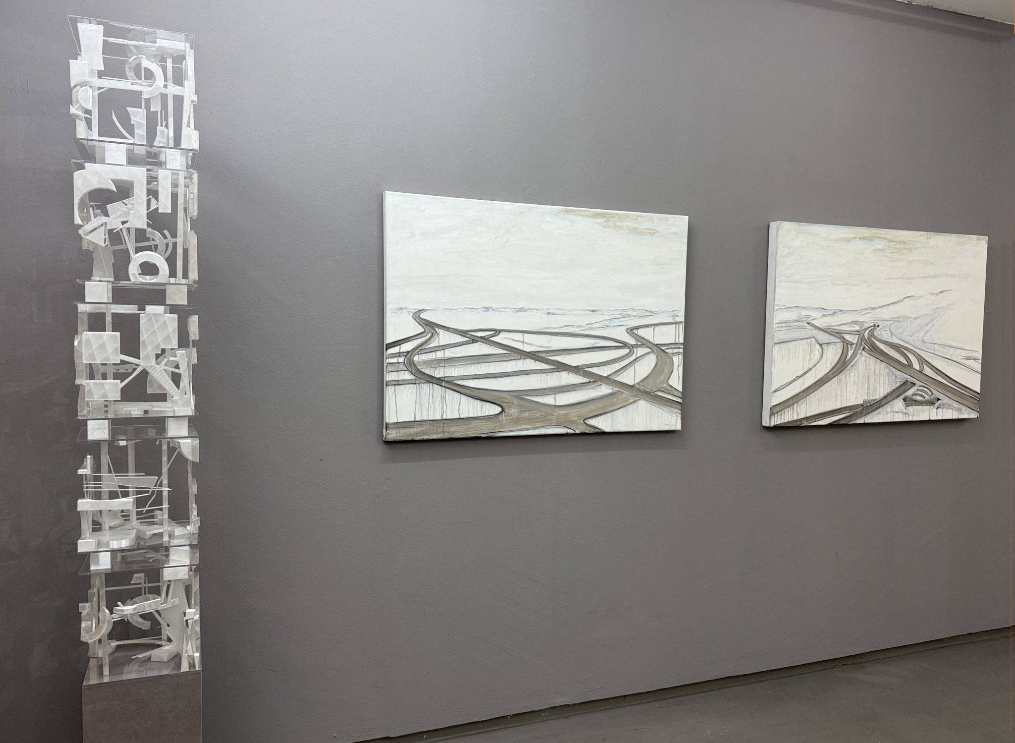 המבנים בתערוכה מורכבים מאותם תאי מגורים מודפסים, מרקמות חיבור בין הגופים, ומשכבות פרספקס צרוב באינפורמציה בשכבות שונות – נופי בנייה, נופי דרך, וציטוטים מתוך ציוריו של ג׳רד מייאס. שכבתיות האינפורמציה מהווה חלק מההשתנות המתמדת של העבודה, יחסית לאדם המסתובב סביבה (בגלריה) והאדם שיתגורר בתוכה.