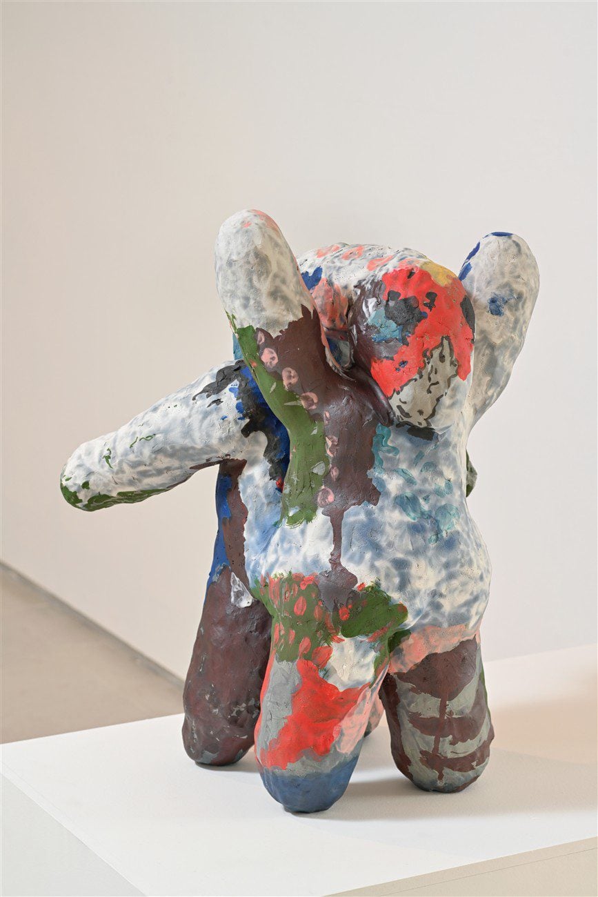 גור: הצבעוניות בדמויות המפוסלות שונה ממה שהייתי רגיל אליו עד עכשיו. אני מרגיש שהיא גם נראית ״קרמית״ יותר – נותנת יותר מקום לתחמוצות ולמלחים, אפילו שגם בהן עשיתי שימוש בצבעים מוכנים. יש בהן משהו איטי יותר, כבד יותר, חם יותר