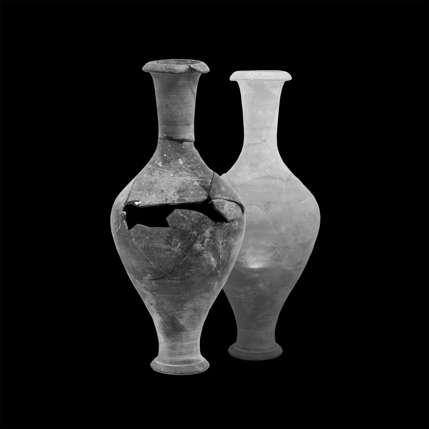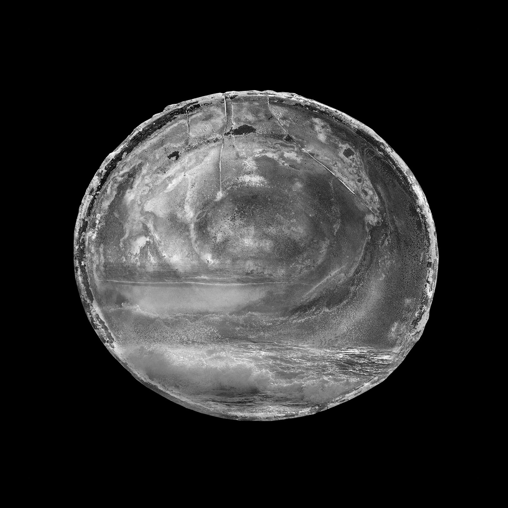 העיסוק בארכיאולוגיה המשיך להעסיק אותי במיצב ״אזורי זמן״, שנוצר כמוזיאון ארכיאולוגי פיקטיבי (הוצג בביאנלה השנייה במוז״א, 2023). הצגתי שם סדרת תצלומים של כלים עתיקים שנלקחו מבית הוריי, שרובם הוצאו ממעמקי הים. שוב, באמצעות עיבוד דיגיטלי עברו הכלים מוטציות שונות, ובתוכם נשקפים נופים שהכלים ״זוכרים״. הכלים גזורים ומוצגים כאובייקטים תלת ממדיים בתוך ויטרינות. לצידם מוצגים שני תצלומי נוף, שבהם שזורים שרידי ציוויליזציות העומדות לטבוע תחת האוקיאנוסים.