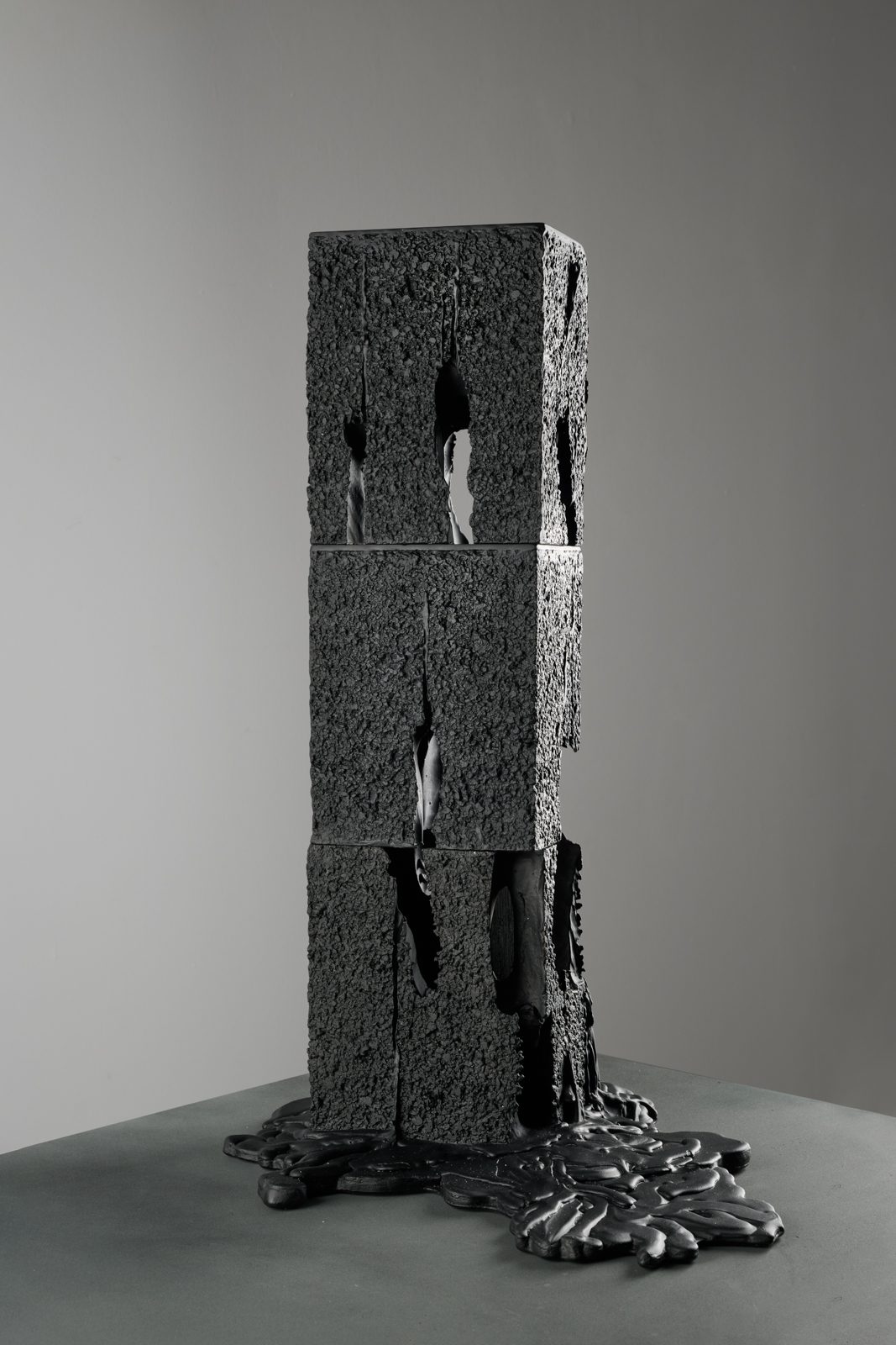 קטיה: כן, שינוי אפיסטמולוגי 😊. בעבודות הפיסול שלי, אף פעם לא התייחסתי לזכוכית במובן הפשוט והדקורטיבי שלה. תמיד הרגשתי צורך להרחיב את התפיסה של החומר. זכוכית שחורה, במובן מסוים, הכי נאמנה למקור של החומר, שהרי בטבע זכוכית וולקנית, מה שנקרא אובסידיאן, היא שחורה.