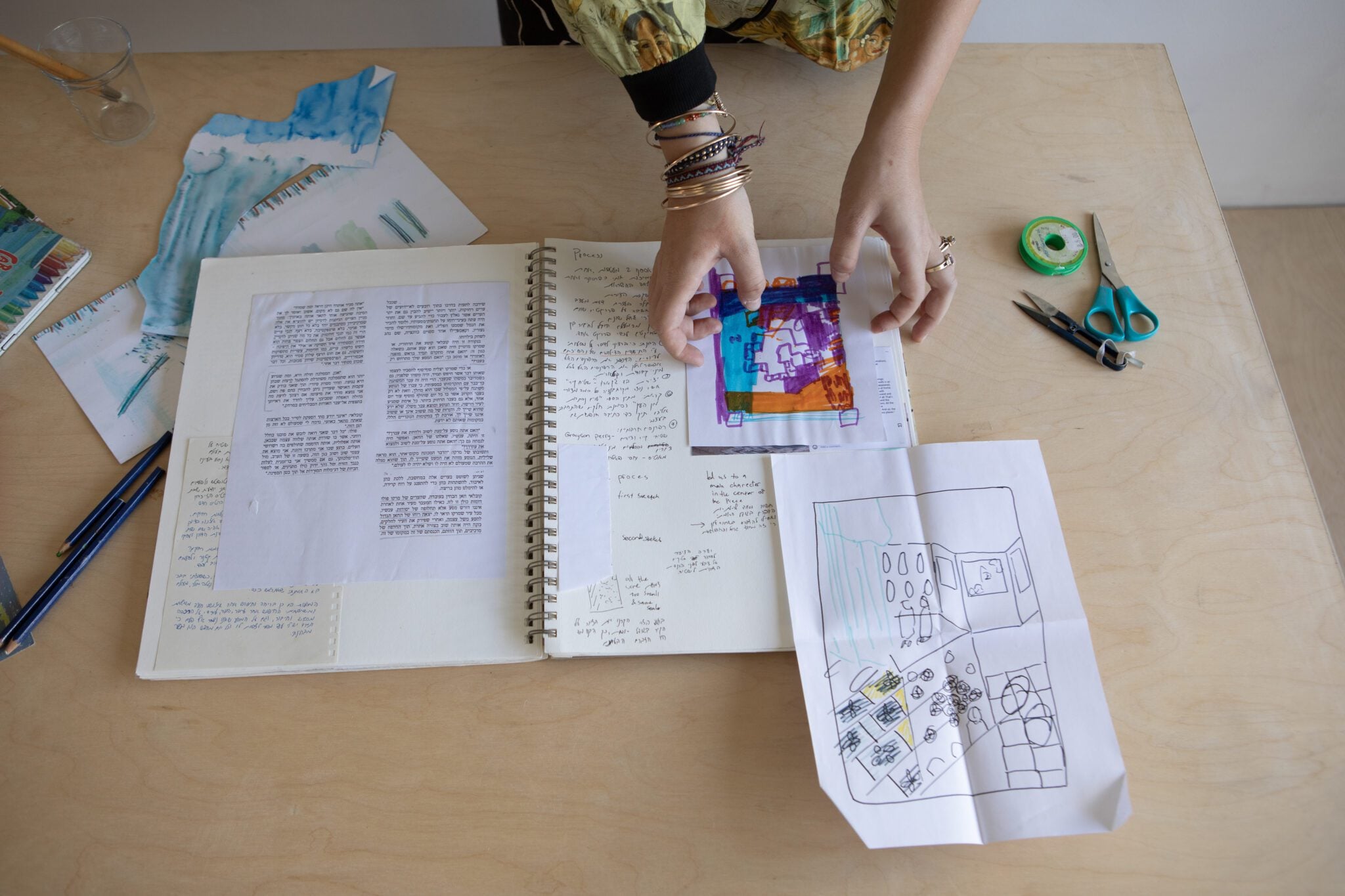צביה: זאת שיטה קצת מורכבת – אני מציירת כמה מעגלים על נייר מדפסת (אני אוהבת להשתמש בנייר הזה לטיוטה, כי זה מרגיש לא מחייב וכך אני מצליחה לפרוק כל רעיון מעולה או גרוע).