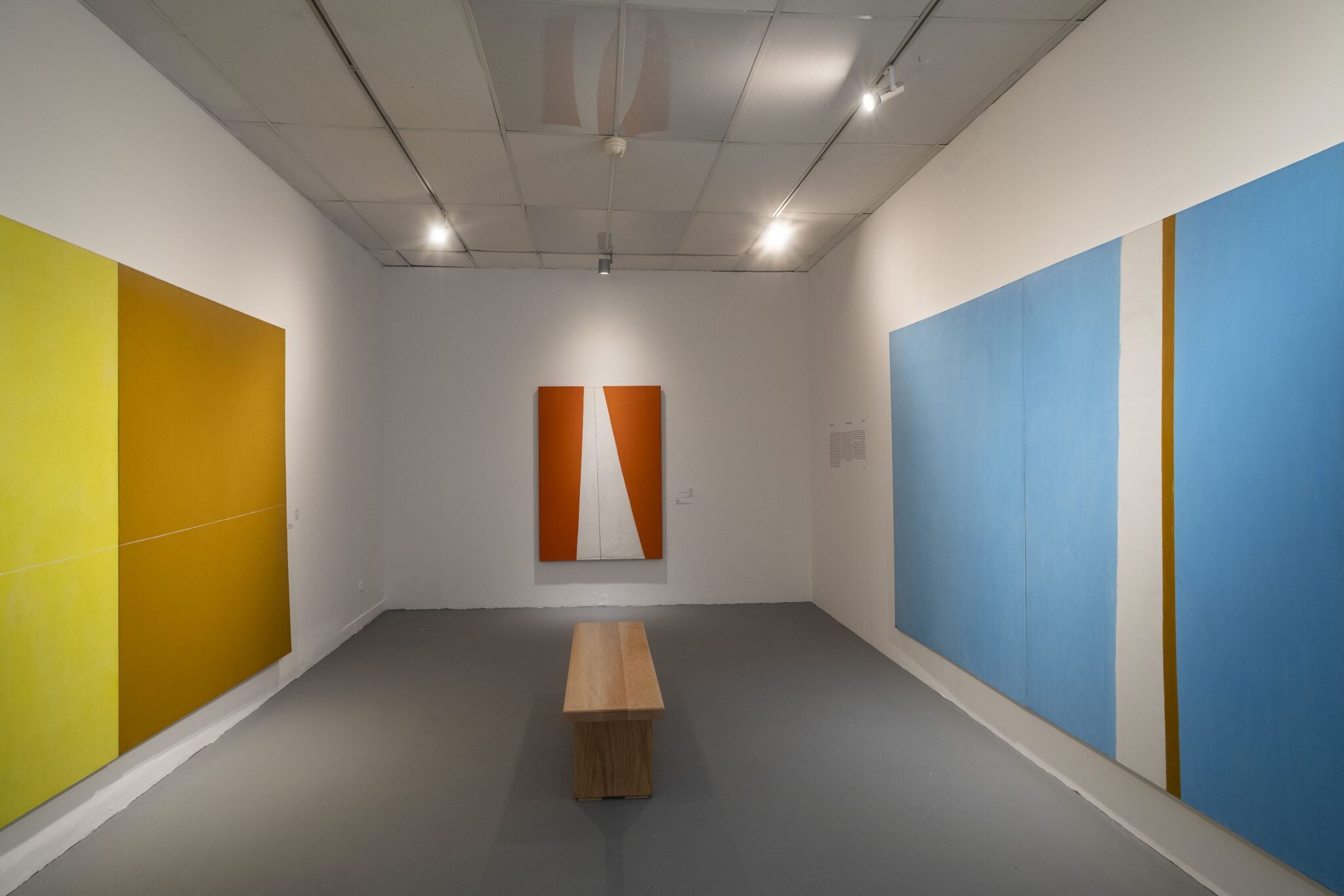 קובי: העבודות של קארן דולב ואיריס סינטרה הן חדשות, ונוצרו עבור התערוכה. דולב, שידועה ברישומי הפסטל המפעימים והיחסית קטנים שלה, יצרה חמישה רישומים ענקיים חדשים, 207 ס״מ גובהם כל אחד. אני זוכר את המידה המדוייקת, כי זה גובהם של שני החלונות באולם במרכזי של המוזיאון, וקארן יצרה חמישה חלונות אלטרנטיביים של טמפרטורות משתנות. איריס סינטרה מציגה ציורים שהפכו להיות פסלים – בדי ציור צבועים בשמן, שמקופלים, ומערך שלהם יוצר יחד תצורת נוף על הקיר. היא מתקשרת למיכאל גרוס, שבעצמו היו גם צייר וגם פסל, והרבה פעמים שניהם יחדיו באותה יצירה.