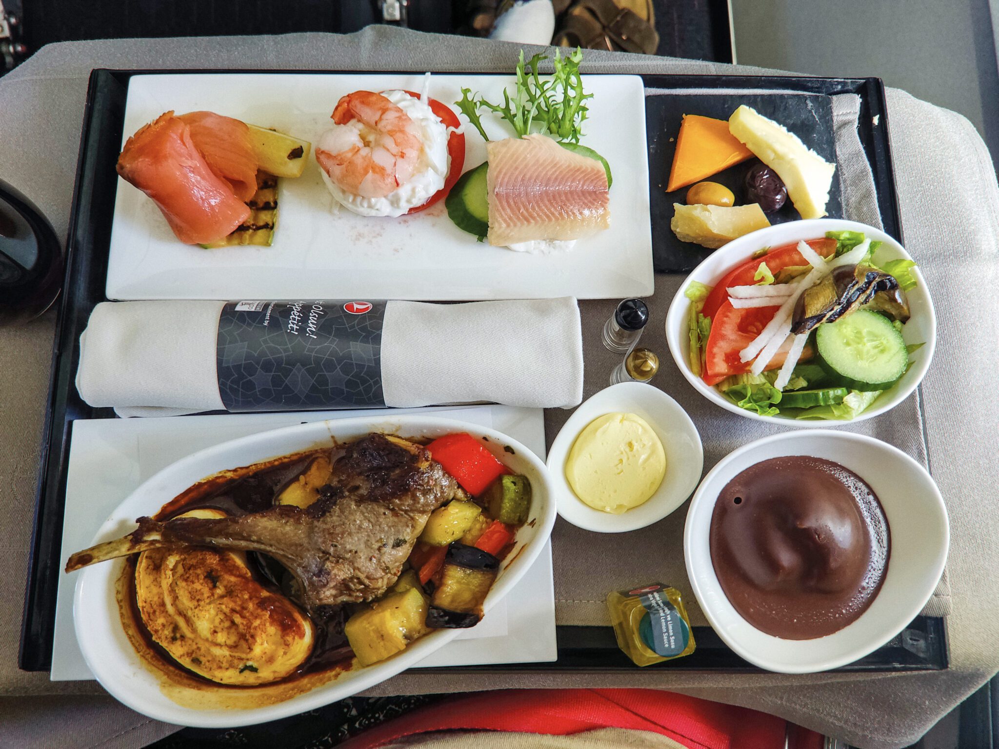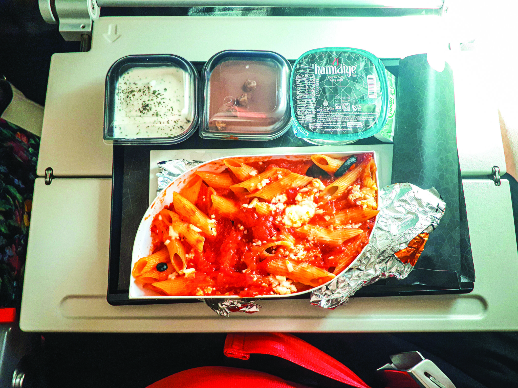 דורי: היו לא מעט, אתן אחת מטורקיש אייר (זאת חברה שלצערי אני לא טס בה כמעט). בארוחה המדוברת היה צלע כבש עסיסי במיוחד עם פולנטה וירקות וסלט ירקות ממש פרש בצד. למנה ראשונה הגישו מבחר ביסים של דגים (סרדינים, סלומון, שרימפס) – הכל טעים להפליא
