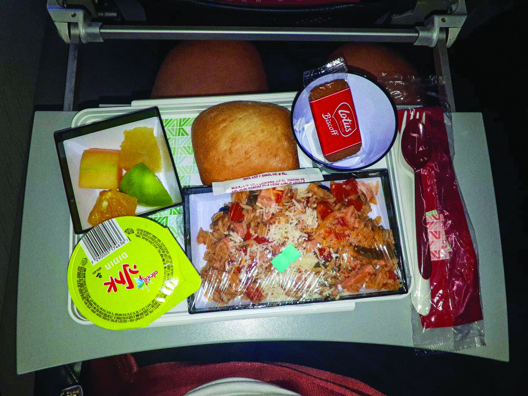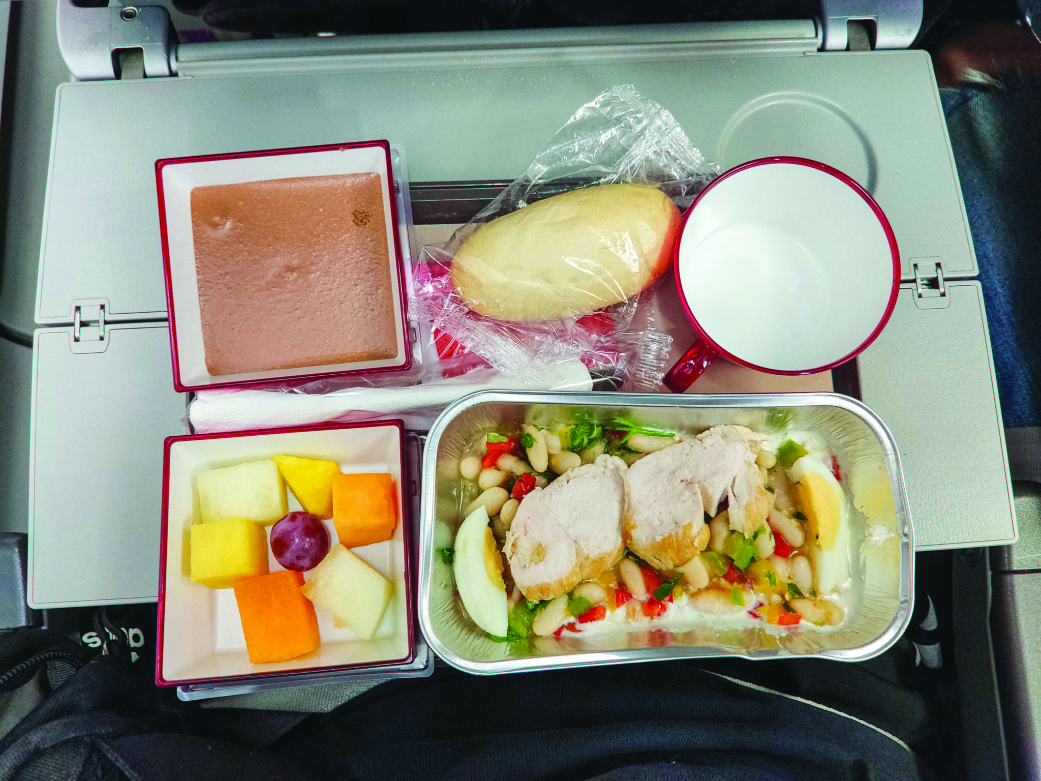 הקטע המצחיק הוא שאני יודע שזה כמעט אף פעם לא מדהים. עם לחץ האוויר שמקהה את הטעמים – ועם אוכל שחומם מחדש שלוש פעמים – זו לעיתים רחוקות יצירת מופת קולינרית. ובכל זאת, אני לא מצליח שלא לבחון כל תא קטן במגש בסקרנות, כאילו מצפה לי הפתעה…״