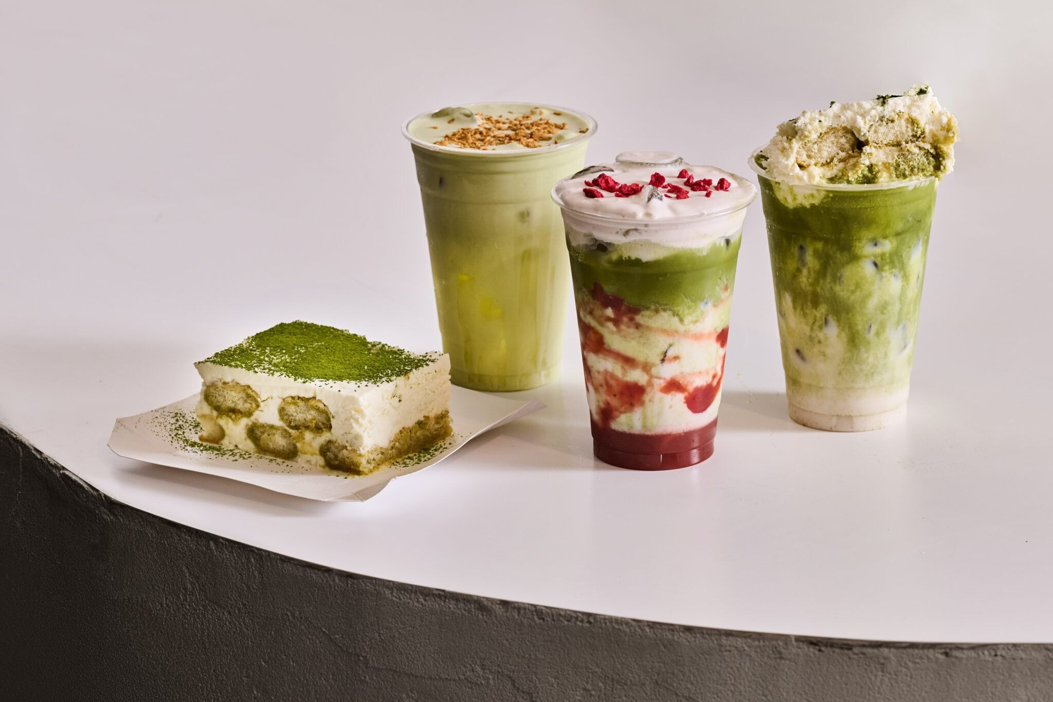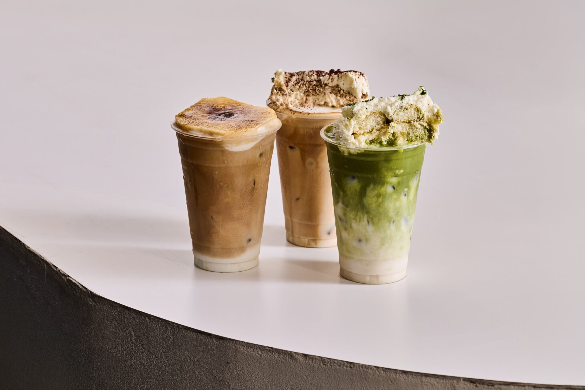 גולת הכותרת של התפריט היא קולקציית משקאות שמחברת בין קינוחים למשקאות: טירמיסו קלאסי עם שכבות בישקוטים, קפה וקרם שמונח מעל קפה קר שנשבר לתוכו בערבוב; גרסת טירמיסו מאצ׳ה וקרם ברולה לאטה עם קציפת קרמל ושכבה שמתקרמלת במקום- כולם מטשטשים את הגבול שבין משקה לקינוח.