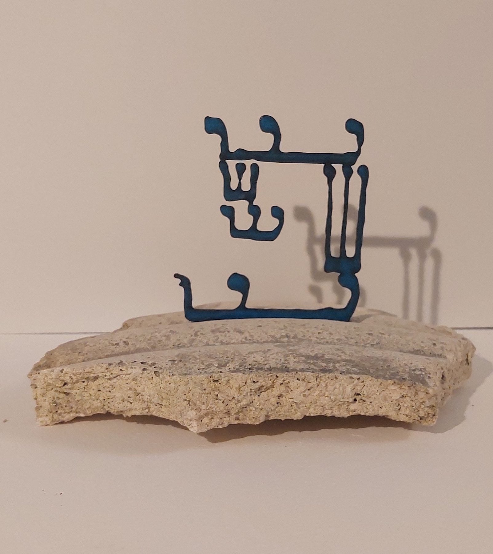 האותיות הכחולות, הלקוחות מהספר, מוצאות מהדף והופכות לגופים פיסוליים המוצבים בחלל הגלריה. המיצב נוצר בעקבות גילוי מחודש של הספר והקשרו האישי־משפחתי לאמנית. התערוכה עוסקת במעבר שבין קודש לחול, בין טקסט למסורת חיה, ובוחנת איך שפה מיסטית עתיקה יכולה להפוך לחומר אמנותי עכשווי.