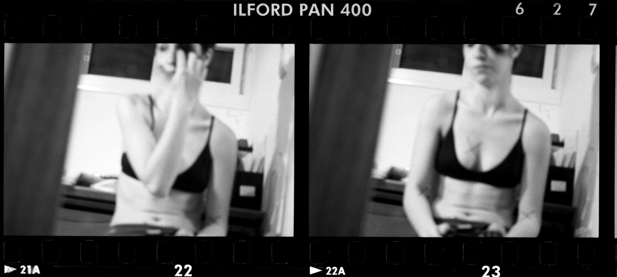 - קבוצת בני נוער משתובבים על הדשא, קופצים זה על זו ויוצרים ״ערימת ילדים״. בכל תצלומי הארכיון הם מחויכים, וניכרת בהם אנרגיית נעורים מתפרצת. על רקע חומרי הארכיון, קולה השלו של קסל מספר: ״קריית טבעון, 1999. אני בת 16 וחצי פה… לא הרגשתי אז מספיק יפה או בטוחה בעצמי בשביל להצטלם כמו הבנות האחרות. אני משתדלת להיות במקום הכי בטוח מבחינתי, מאחורי המצלמה״. קאט לסדרה של פורטרטים עצמיים, באחרון שבהם נראים קווי מתאר של נערה אלגנטית, תמירה, אוחזת במצלמה; בבואתה משתקפת במראה.