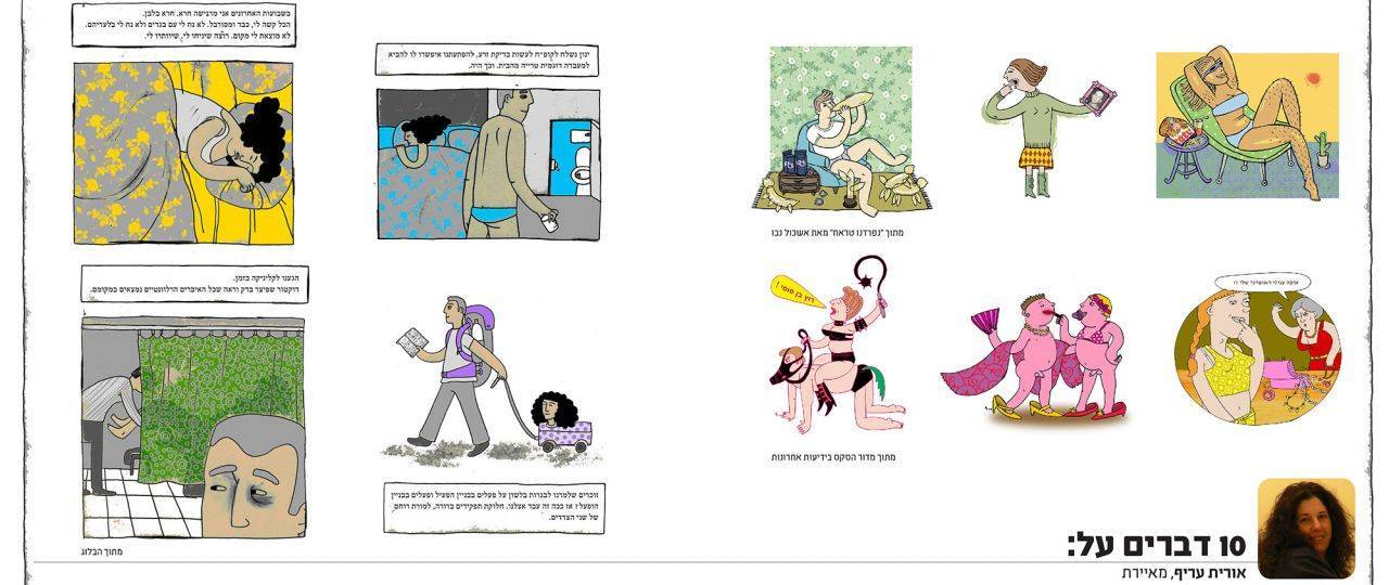 אורית עריף, 36, למדה עיצוב גרפי בהתמחות באיור ב״ויטל״. במקביל לעבודתה כמאיירת מלמדת במכללה האקדמית עמק יזרעאל – בי״ס גורן לתקשורת חזותית. כותבת ומאיירת בפורמט קומיקס את הבלוג האישי שלה באתר רשימות.