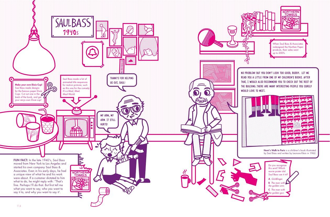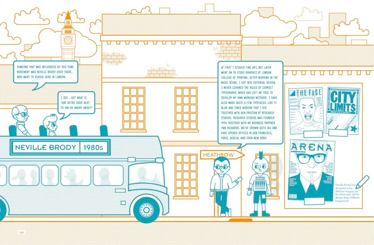 הספר, שיצא לאור בחודש שעבר בהוצאת גשטאלטן, הודפס בפורמט קטן, בכריכה קשה, וכולו מאויר בקו ידידותי ונעים. לאורך כל הסיפור מופיעות חידות, אפשר לגזור חלקים ממנו וליצור דמויות נייר של מעצבים; אולם בניגוד למראה השובב, תוכן הספר רציני והוא מיועד לא רק לילדים, אלא לכל מי שמעוניין ללמוד על ההיסטוריה של העיצוב הגרפי מהמאה ה־18 ועד סוף המאה ה־20.