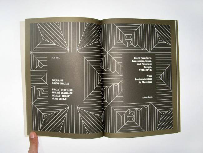 guy saggee: גלית גאון, האוצרת הראשית של מוזיאון העיצוב, אספה בשנה שנתיים שתכננה את התערוכה ספרים רבים על עיצוב מהמדינות המשתתפות. ישבנו איתם והנוכחות של הפאטרנים היתה דומיננטית, גם באוביקטים בתערוכה זיהינו את הדבר הזה ולכן היה לנו מאוד נח לייצג ״עבר״ או ״הווה״ (שמות חלקי הקטלוג) באלמנטים מופשטים שכאלה. את הצורות עצמן לקחנו באופן חופשי מהמכלול היצוגי של הארצות במובן הרחב ביותר שלו – הדוגמא של כריכת ה״הווה״ היא קווים סכמטיים לקיפול נייר לייצירת עקרב טיפוסי שמצוי בצ׳כיה. הצורות על כריכת ה״עבר״ לקוחות ממדי הסוואה ששימשו את הצבא הרומני בשנות השמונים וכו׳