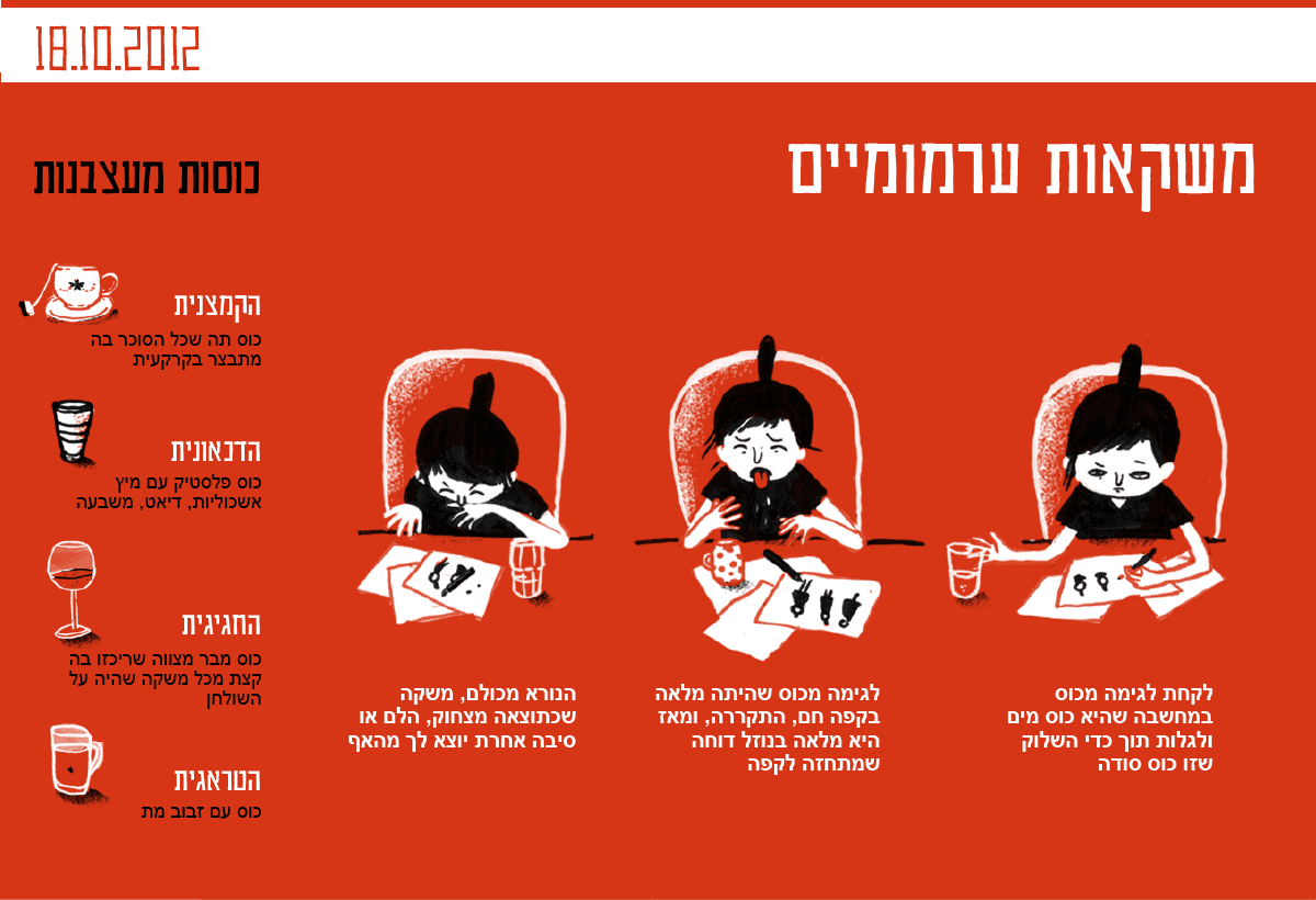 יותר מ־17 אלף לייקים יש לעמוד הפייסבוק של עינת צרפתי, דברים שמעצבנים אותי, ואני, באופן די מביך, אפילו לא שמעתי עליו עד לפני שבועים. לא כל כך ברור לי איך חמקה מעיני התופעה הזו, 17 אלף לייקים לעמוד של מאיירת צעירה שרק סיימה את הלימודים לפני שנה וחצי, אבל אני חושב שזה בדיוק אחד הדברים שלא היו יכולים לקרות לפני העידן הדיגיטלי, ולכן, אחרי שבשלוש הפגישות האחרונות לקראת התערוכה נפגשתי עם כמה מ־האנשים החשובים? דור המייסדים? איך לכנות אותם? – החלטתי שזה הזמן לגוון קצת עם קול צעיר יותר.