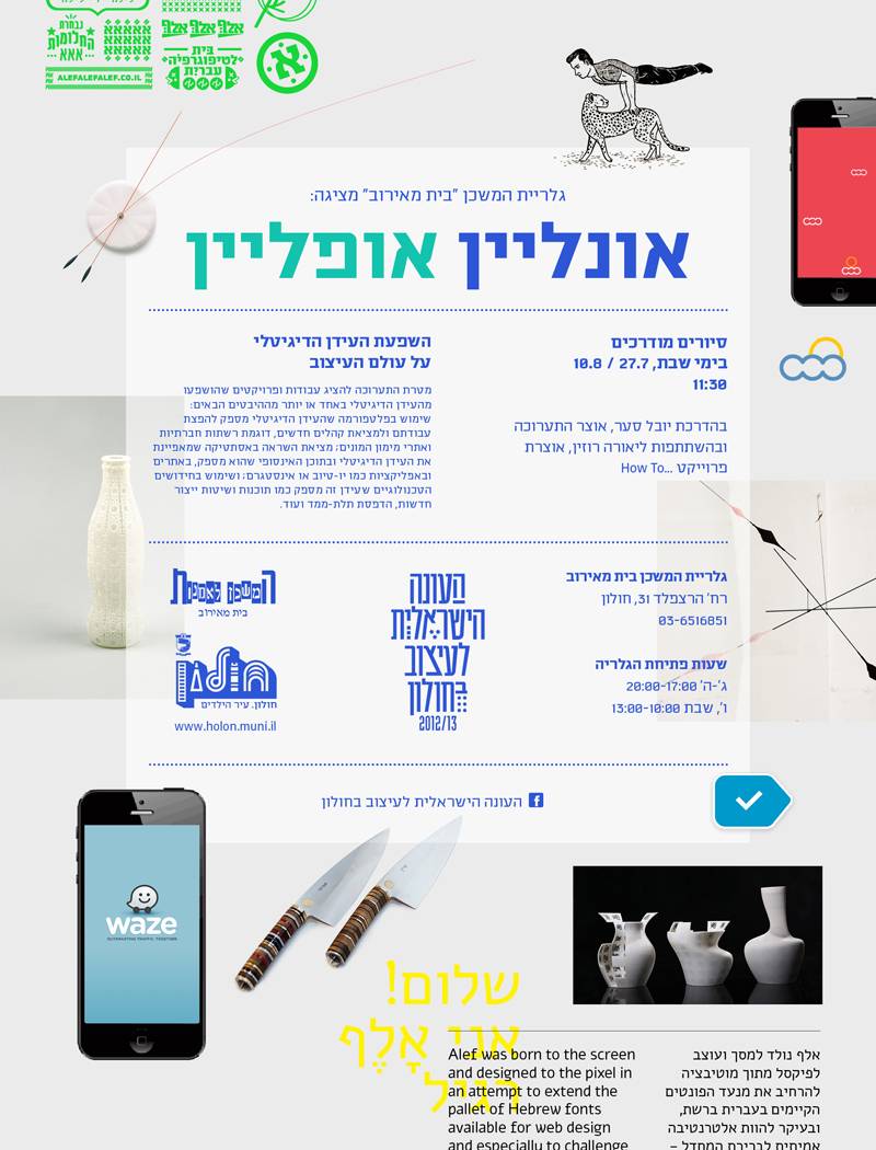 במידה ולא ביקרתם עדין באונליין אופליין, התערוכה (הבאמת מקסימה ויפה) שאצרתי בגלריית המשכן בית מאירוב בחולון, ובא לכם לשמוע אותי מספר עליה, נגמרו התירוצים. ביום שבת הקרוב ה-27/7, וגם בזה שיגיע שבועים אחריו, ב-10/8, יש לכם הזדמנות לתקן את המצב.