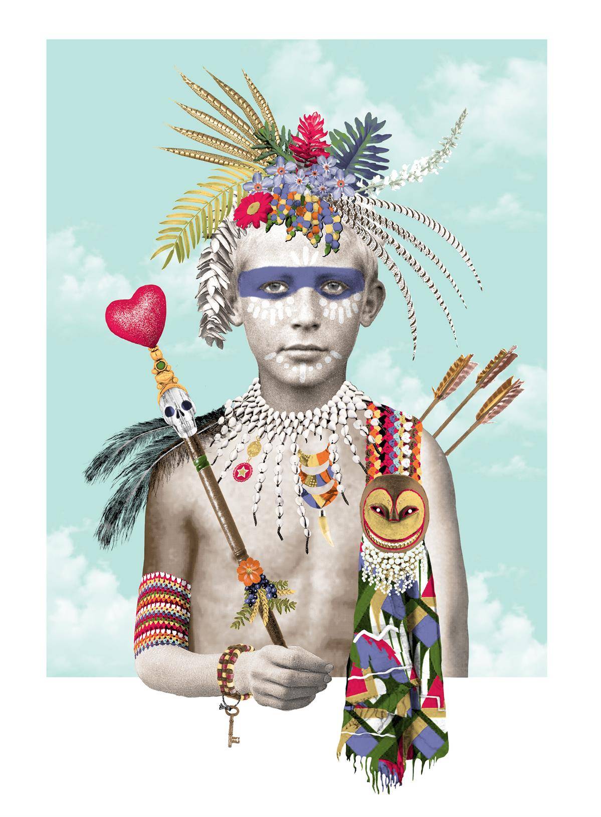 מה שיצא בסוף הוא עבודה של נער שנמצא שנייה לפני בגרות להפוך לגבר. הנער מציג ומקרין איזו שבריריות וחולמניות שבאה מעולם הילדות, אבל באותו זמן חשה ששינוי הולך לקרות: לבוש בבגדי לוחם אבל עם חצים ומקל שבסופו יש לב אדום שיצרתי עם גליטר, כך שהוא מציג את שני העולמות. הוא צעיר יותר מכל הנשים שתלויות סביבו בגלריה ומצד שני נראה כמו קופידון אחראי