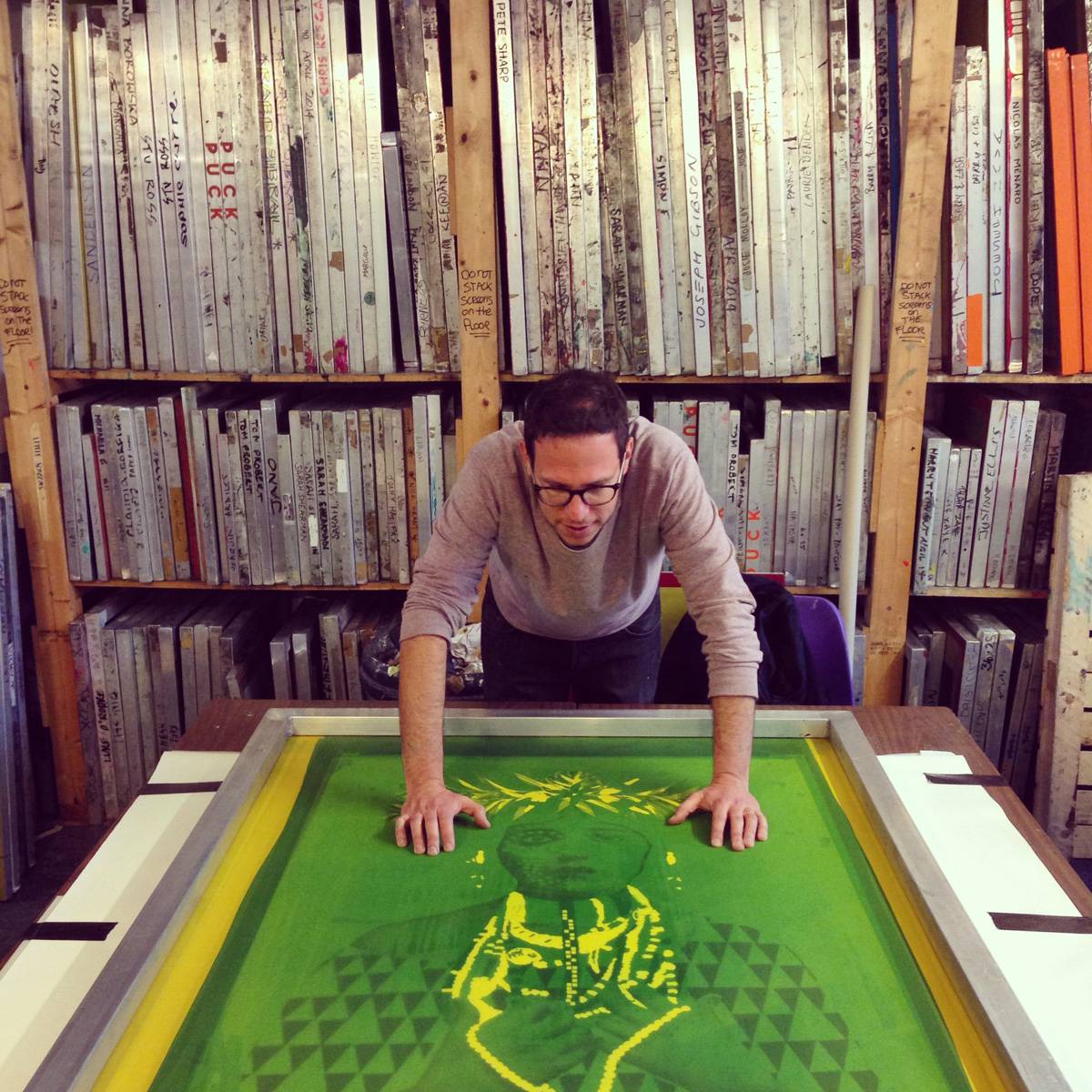 ״בשנתיים האחרונות שלי בלונדון החלטתי שאני עדיין לא רוצה להתחיל את ההתמחות ועבדתי כרופא פרילאנס בחדר מיון. זה איפשר להשקיע יותר בצד היצירתי בחיבור לדפוס משי. עשיתי קורס במשך יומיים, נזרקתי למים והתחלתי לעבוד. באותה תקופה גרתי במזרח לונדון וחמש דקות מהבית היה סטודיו בשם London Print Club. הוא היה פתוח 24 שעות ובכל דקה פנויה ביליתי שם, בין אם זה בין אחרי משמרת בין חצות לשמונה בבוקר ובין אם בשעות היום. תמיד התחברתי לקולאז׳ים ולהדפסים, לחיבור של אלמנטים שיוצר משהו חדש. זו טכניקה מגניבה ונורא פיזית, שדורשת מיומנות ודיוק. זה ממש קראפט, עבודת יד״.