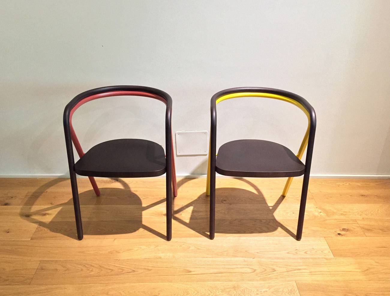 במשך שלוש השנים האחרונות עבדנו יחד עם Cappellini על גרסה חדשה של כיסאות בשם Chair 2 שמשלבת לא רק שני צבעים וצורות אלה גם שני חומרים: הרגלים האחוריות של הכיסא והחלק התחתון של המשענת יוצרו מכיפוף צינור פלדה, והרגליים הקדמיות והחלק העליון של משענת הגב ממוט עץ. השילוב בין שתי הטכנולוגיות והחומרים מאפשר לנצל את התכונות והאיכויות של כל חומר באופן חכם ואסתטי: הפלדה נותנת את החוזק המבני והעץ נותן מגע נעים וחם עם האזורים שנוגעים בגוף.