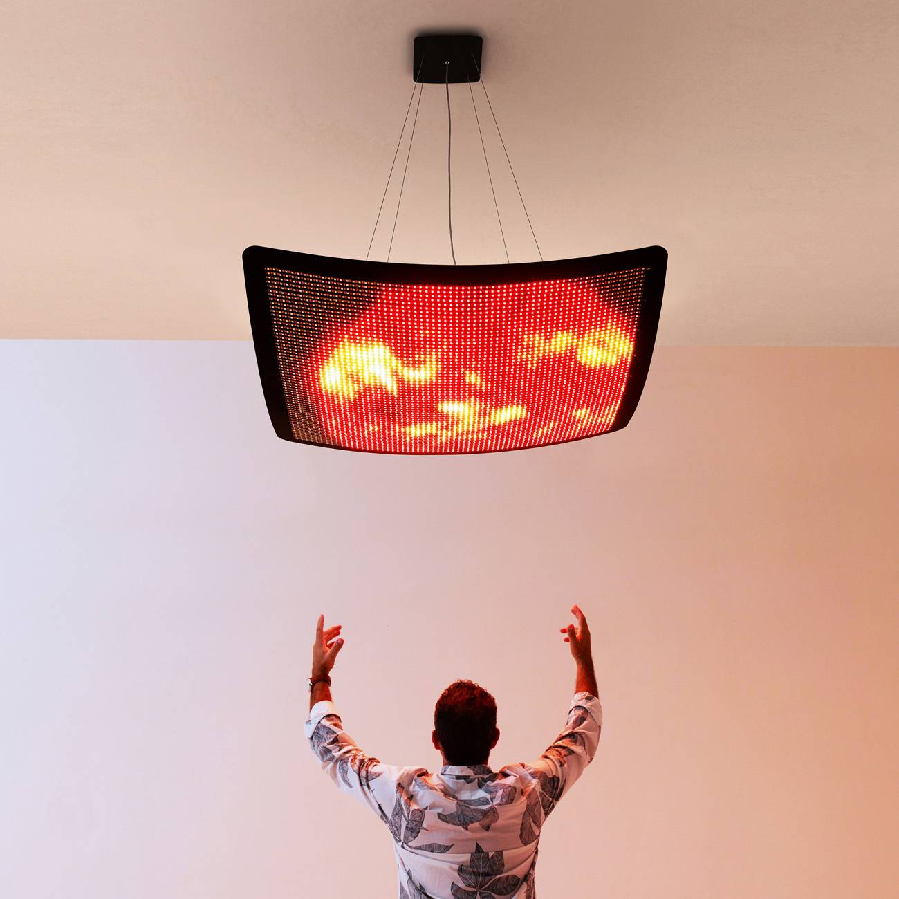 הצגתי את המנורה האיקונית קלאסית של אקווה שאותה הגדלנו לשלושה מטרים גובה והכנסנו מנוע תאורה דיגיטלי לתוכה, ועוד שש משפחות מנורות שעיצבתי בשנים האחרונות, וגם שולחן עץ גולמי שנועד לתצוגה אבל משך הרבה תשומת לב. לרוב המנורות החדשות הללו הוספתי ממד טכנולוגי שמאפשר להן להשתנות ממנורה לעבודת אמנות שהיא וידאו־ארט. לקחתי את המסורת של אקווה וחיברתי אותה לעידן הטכנולוגי הכי חם עכשיו, שנקרא internet of things – IOT. במקרה שלנו זה חיבור בין מחשב שנמצא במנורה לאלפי לדים, אני עובד על זה ביחד עם מייקל זרון שמתכנת בכישרון רב את המנורות ואת האפליקציה. היינו היחידים שהציגו במילאנו את השילוב של מנורה וטכנולוגיה בצורה שבהחלט יכולה להיות העתיד של עולם התאורה.