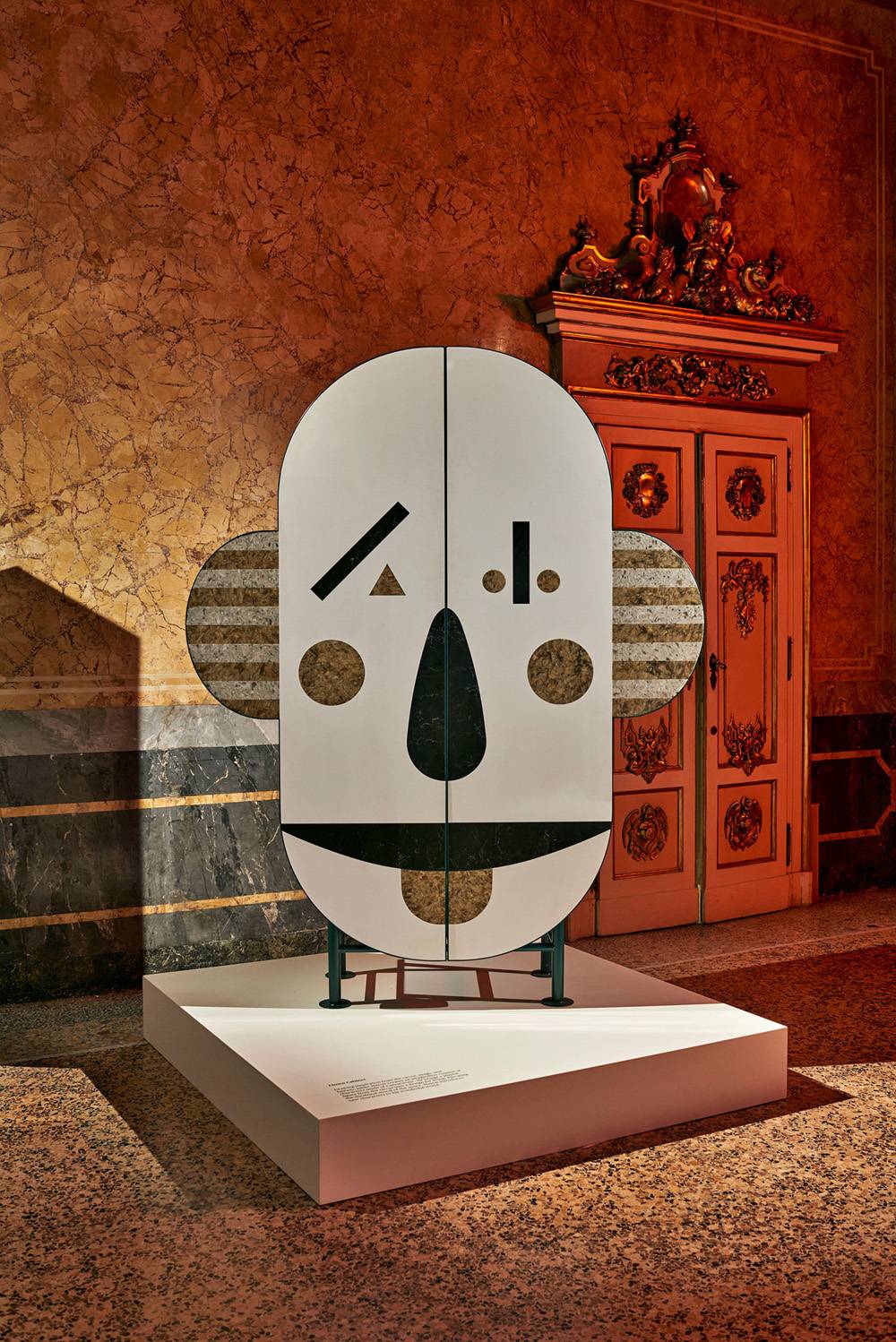 מסכות שונות המדמות פרצופי ליצן, שהפכו לסימן ההיכר של חיון ועוצבו כעת מאבן קיסר, מוקמו בחלל לצד קרוסלות, ארונות קיר ושולחנות. כך, החומר הייחודי קיבל משנה תוקף לרב־גוניותו: שולחנות אוכל, שולחנות קפה וארונות הפכו לדמויות בעלות מאפייני ציפור ופנים מאוירות, וכל מרכיבי המיצב תרמו לתחושה קליידוסקופית שאיפשרה למבקרים לשחק עם החומר באופן מרענן ולא צפוי. התוצאה הייתה מיצב סוריאליסטי עם אלמנטים משעשעים שיצרו תחושה של כניסה לעולם של פנטזיה.