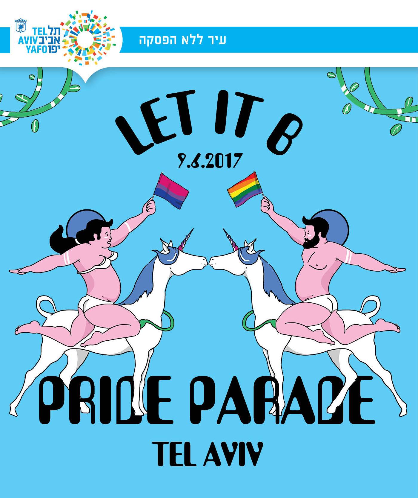 לוגו מצעד הגאווה של תל אביב לשנת 2017 אוייר על ידי יוסי מדר, בוגר המחלקה לתקשורת חזותית בוויצו חיפה מהשנה שעברה. פרויקט הגמר שלו היה איור מחדש של שבעת החטאים שעל פי הנצרות דינם דין מוות, תוך שימת דגש על מין ומגדר בחיים המודרניים. הפרסומים של מצעד הגאווה מציגים השנה איורים של גבר ואישה בי־סקסואלים, הנושאים את דגל הגאווה ואת דגל הקהילה הדו־מינית, תחת הכותרת LET IT B.