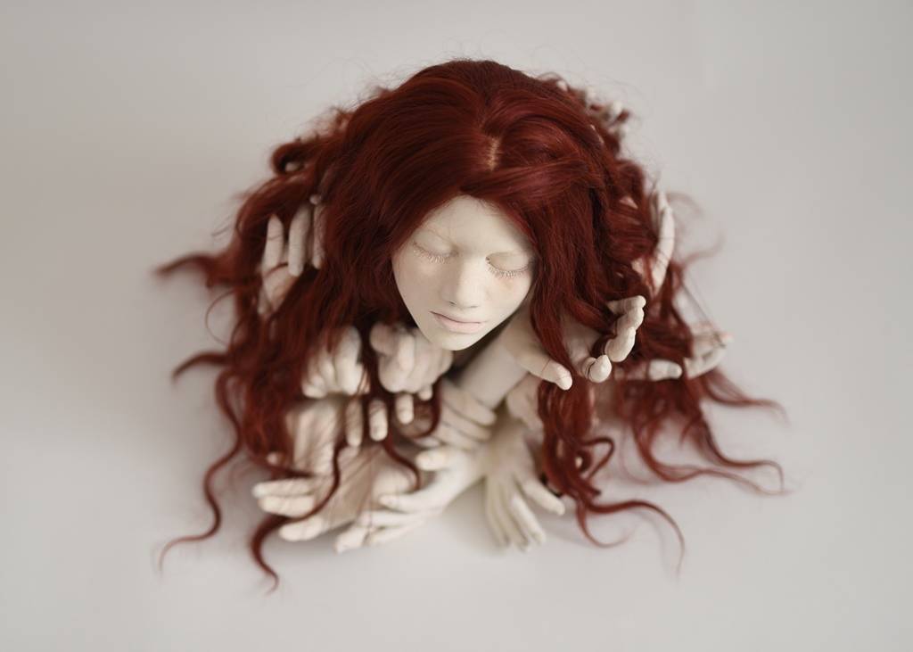 אבל בחדר הזה יש סתירה פנימית. האצבעות אינן יכולות לחוש, הן לכודות ברשת החוטים. ״אני מחברת אותם באריגה אובססיבית, של חוט אחד ארוך שיוצר מארג מאוד עדין כמעט בלתי נראה, ויחד עם זה מאוד צפוף ומאוד מאסיבי. גם השיער שלה הופך לחלק מהחוטים. השיער הוא סוג של המשך, הארכה של הדמות, שהופך להיות חלק מהמארג של החדר״.