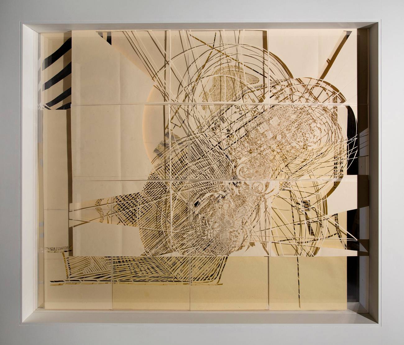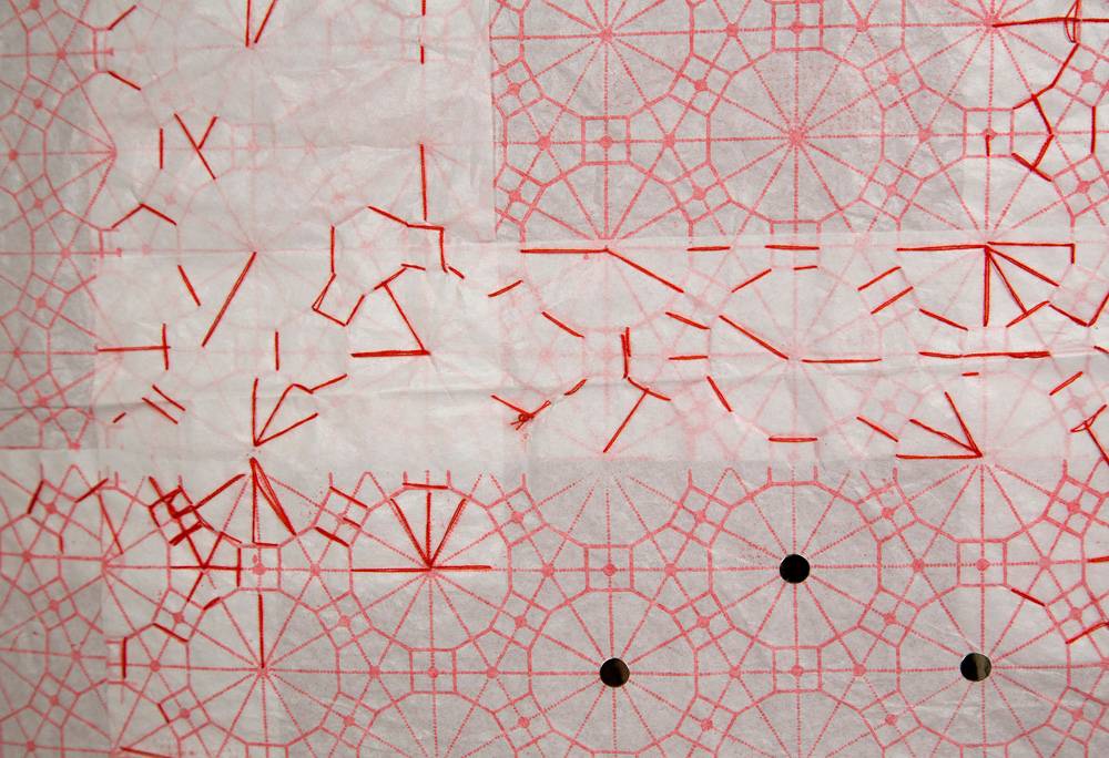 כמובן שכל העבודות בתערוכה שיש בהן טכניקות של חיתוך נייר, לרוב ידני, יוצרות סוג של רישום בסכין עד כדי פירוק הנייר כך שהקווים שנותרים בקושי נושאים אותו. יש עוד כל כך הרבה דוגמאות, כי הרי זה הקונספט של התערוכה – לקחת את הנייר למצבי הקצה שלו. רציתי לקרוא לתערוכה ״קצה החומר״ או ״מצבי קצה״ שזה מה שביקשתי שיקרה בתערוכה. לא כל העבודות לוקחות אל הקצה אבל בהחלט מתקרבות אליו מאוד