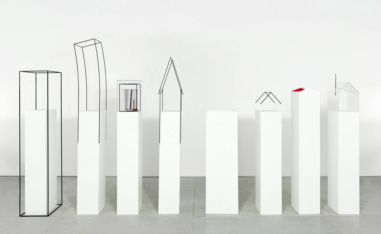 אך מעל הכל, המוטיב שחוזר יותר מכל בעבודות הוא העיסוק במושג הבית. אם זה בתוכו – הדלתות, הכורסאות, ואם זה עיסוק בצורה, בקווי המתאר. אחת העבודות המרשימות, המוצבת לאורך כל חלל הגלריה, היא ״לידתו של כיסא״: 20 מבנים מפלדה בציפוי כרום שחור שנהפכים מריבוע שטוח לכיסא. עבודה אחרת בקו אחד, שעשויה מפליז בציפוי אמייל, יוצרת קו מתאר של שני בתים מחוברים. יש גם ניסיון לברוח מהבית, בעבודה ״אני לא פה״ – חלון עץ קטן שמוקם בגובה שני מטרים על אחד הקירות, וממנו יוצא אריג לבן בדומה לסדינים שאסירים קושרים כדי לברוח מבית סוהר.