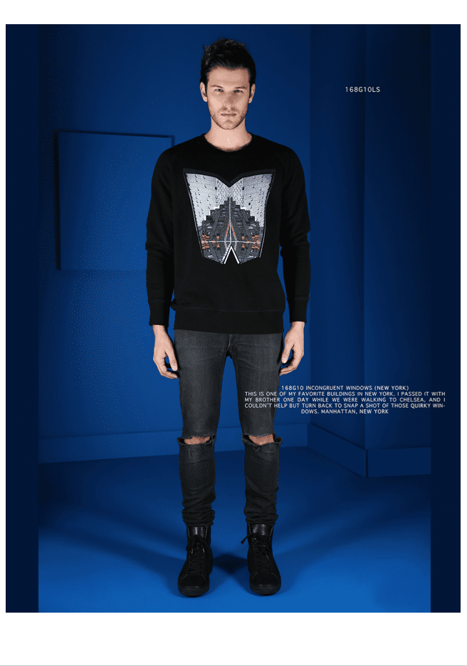 על הנייר הרעיון היה פשוט – ליצור חולצות טי שמשלבות דימויים מופשטים שמקורם בצילומים שעברו מניפולציות דיגיטליות. המציאות כמובן הייתה קצת שונה. ״בזמנו לא חשבתי שזה יהיה כל כך קשה״, הוא אומר ופורץ בצחוק, כשהוא מחזיק מספר דגמים מתוך קולקציית החורף החדשה. ״לפני חמש שנים הייתי בלי שום ניסיון. בהתחלה הייתי נוסע מהוליווד, שם אני גר, לדאון טאון לוס אנג׳לס וקונה חולצות מוכנות בשביל להדפיס עליהן. אבל רציתי משהו יותר טוב. העסיקה אותי השאלה ׳איך אתה מביא את עצמך לזה שזו תהיה הטי שירט שלך?׳.