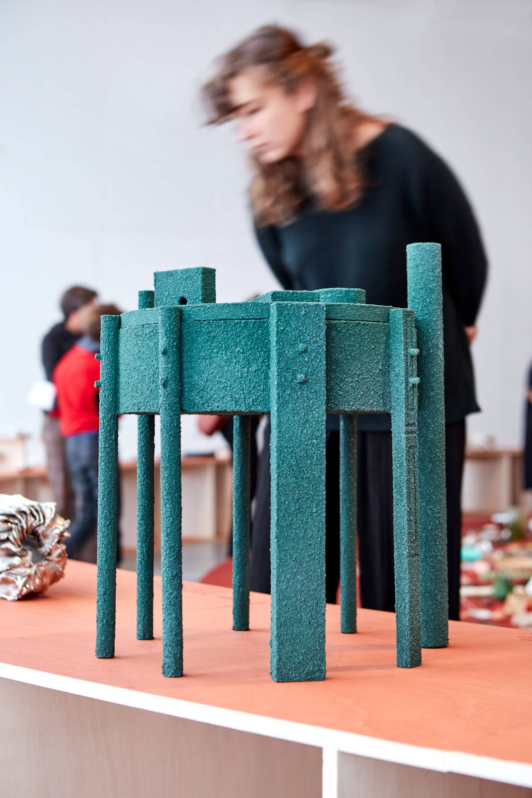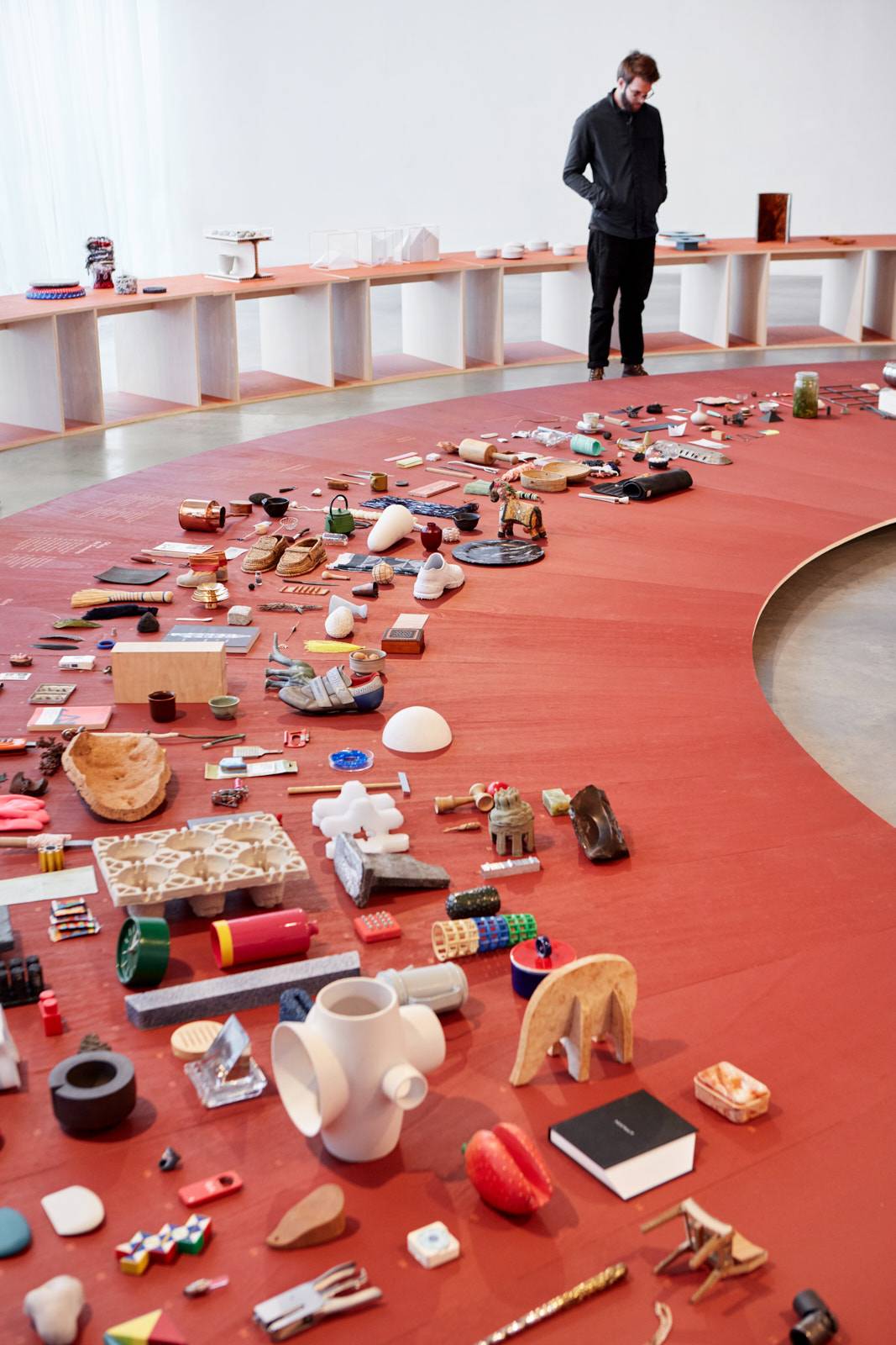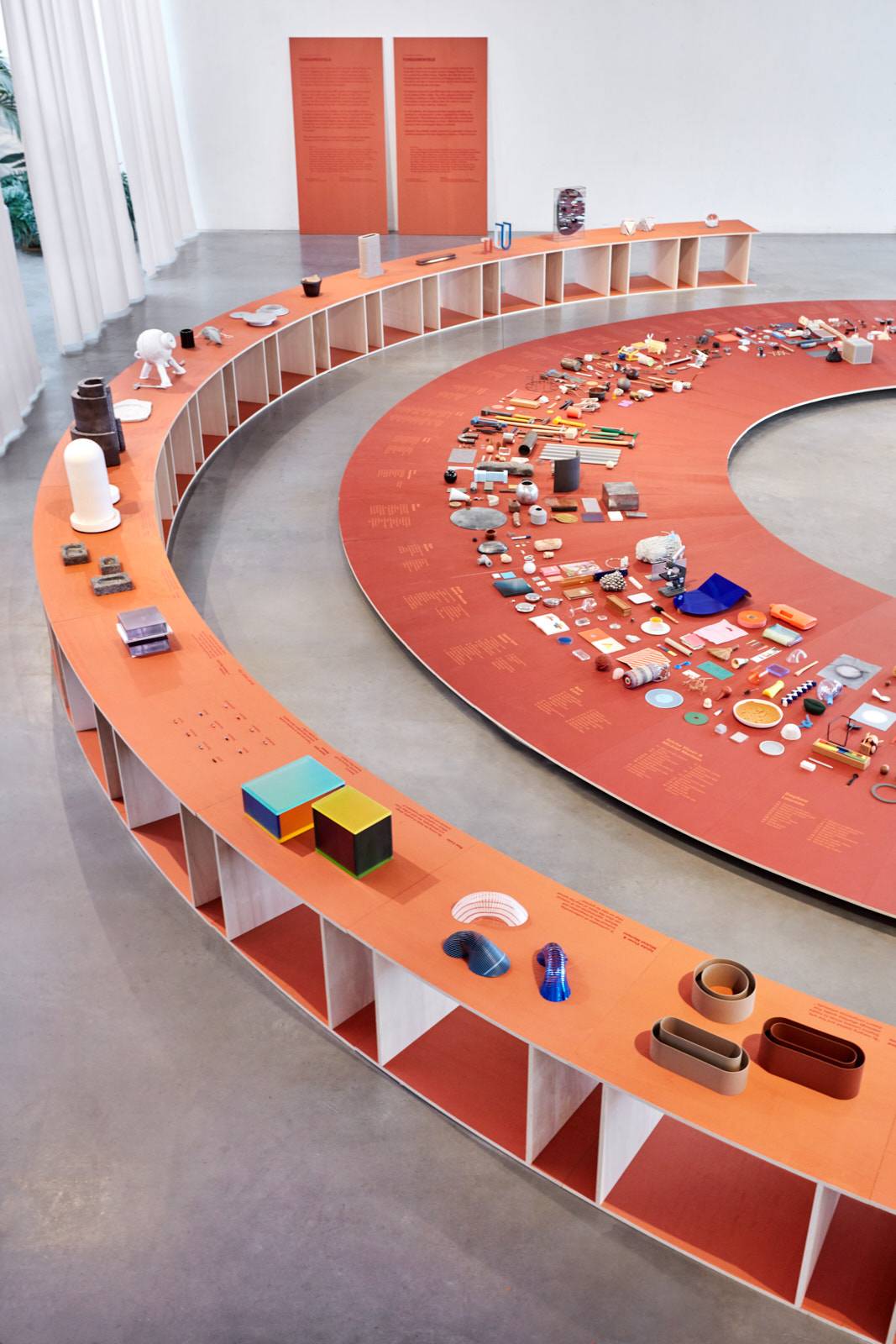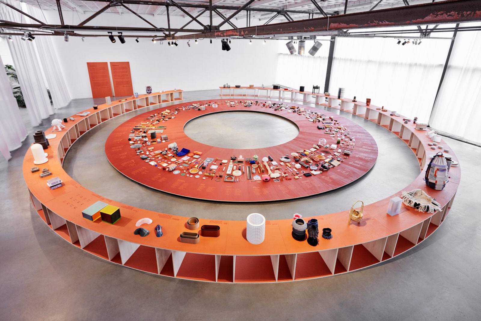 במרכז החלל הוקמה בימת תצוגה עגולה, שהורכבה ממעגל חיצוני ופנימי. בבימה המרכזית הציג כל מעצב כ־20 אוביקטים מחלל העבודה שלו ומאוספיו האישיים, שתרמו באופן עקיף או ישיר לטובת היצירה. מול האוביקטים, במעגל החיצוני, הוצגו המוצרים הגמורים. חלק מהמעצבים בחר לחשוף את כלי העבודה והמדידה שבהם הם משתמשים ביום־יום של עבודתם, בעוד שחלק אחר בחר לשתף את הקהל באוביקט סנטימנטלי הקרוב ללבם של המעצבים, כמו בובת חוטים מילדותם, מקרן שקופיות נוסטלגי או תכשיט ששייך לסבתם.