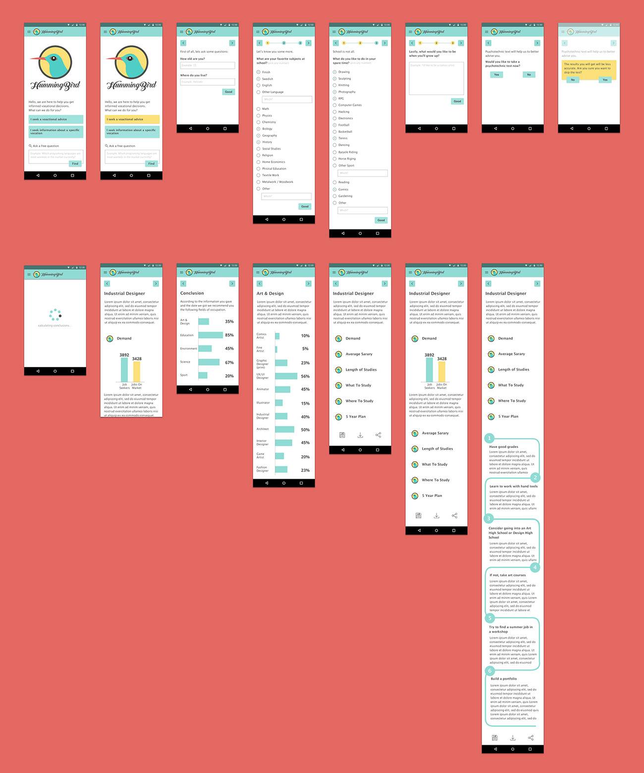 בשבת בלילה, כבר היתה מערכת עובדת, או פרוטוטייפ שלה, ואז המתכנתים הלכו הביתה ואני נשארתי על העיצוב ועל הלוגו – שהקרין על בחירת הצבעים של האפליקציה. לפני שהם הלכו, בחרנו שם – אורקל היה יכול להיות שם מעולה לזה, אבל הוא כבר תפוס. שאלתי אותם אם אין להם איזו מגדת עתידות מיתולוגית מההמיתולוגיה הפינית, אבל אין, או שלא עלתה להם לראש. אז הלכנו על חיות והסכמנו על hummingbird, יונק דבש