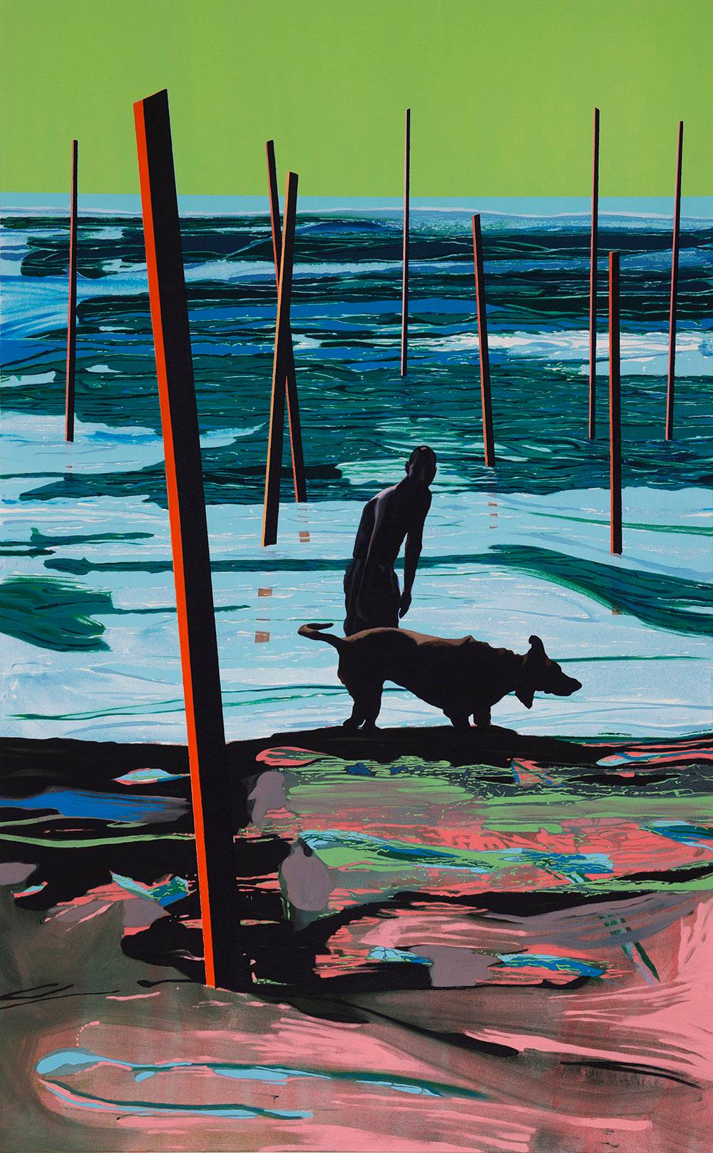 האינסטינקט הראשוני שלי היה להתייחס אל הכתמים כאל מקום: משהו בפורמטים הגדולים יחסית שבהם אני מצייר, גורם לי להתייחס לבד הציור כמו מרחב עם גודל, עומק, תוואי שטח דינמי. הדמויות האנושיות הגיעו הרבה אחרי, וגם – לא תמיד הגיעו. היו עבודות שבהן הנוכחות האנושית נותרת מרומזת, אך חסרה
